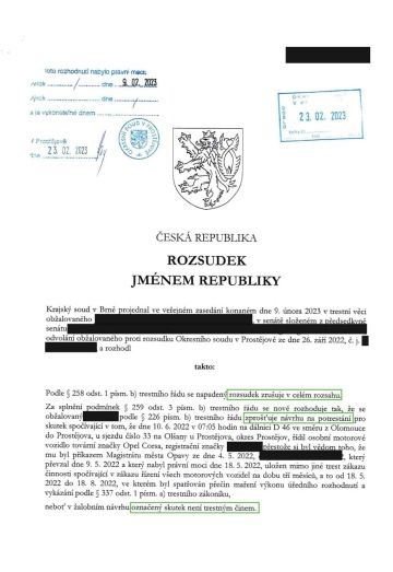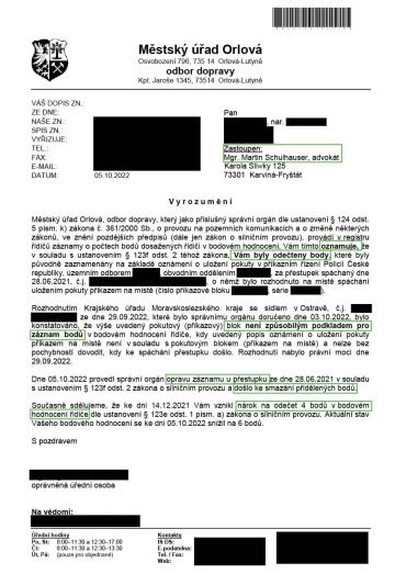 Doporučuji služby advokátní kanceláře PRAVA ŘIDIČE. Služby této kanceláře jsem vyhledal na základě potřeby zastoupení ve správním řízení k přestupku s překročením rychlosti, ke kterému došlo 2 x během jednoho roku a s hrozícím odebráním řidičského průkazu. Cena byla fixně stanovena na počátku jednání. Celý průběh spolupráce a jednání s panem advokátem bylo naprosto profesionální, vřelé a vstřícné.
