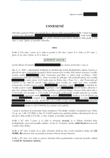 Čím dříve se s námi po vzniku situace spojíte, tím lépe se dá celá záležitost řešit! Zvládneme i situace, kdy jste již obdrželi rozhodnutí formou trestního příkazu, rozsudku nebo rozhodnutí ve správním řízení a hrozí vám zákaz řízení. Podrobně analyzujeme celý průběh dosavadního řízení a sdělíme vám možnosti dalšího postupu ve vaší situaci.